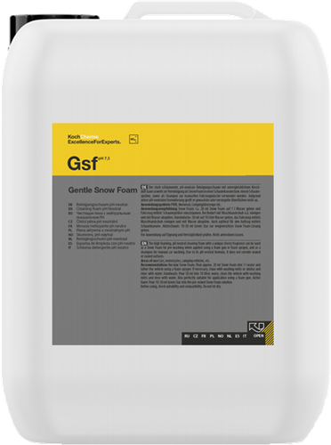 Het hoogschuimende, pH-neutrale reinigingsschuim met onvergelijkbare kersengeur kan gebruikt worden voor voorreiniging ( Snow Foam in een schuimpistool of een schuimsproeier) en als shampoo voor handmatig wassen van voertuigen. Gentle Snow Foam vormt een uniform, zeer goed bevochtigend schuimtapijt dat langdurig aan het oppervlak hecht en daardoor een lange inwerktijd mogelijk maakt. Vanwege de pH-neutrale formulering, tast het met was behandelde of afgedichte oppervlakken niet aan. Voor hardnekkig vuil en voor een snelle insectenoplossing kan Gentle Snow Foam worden verrijkt met Green Star als actief schuim.